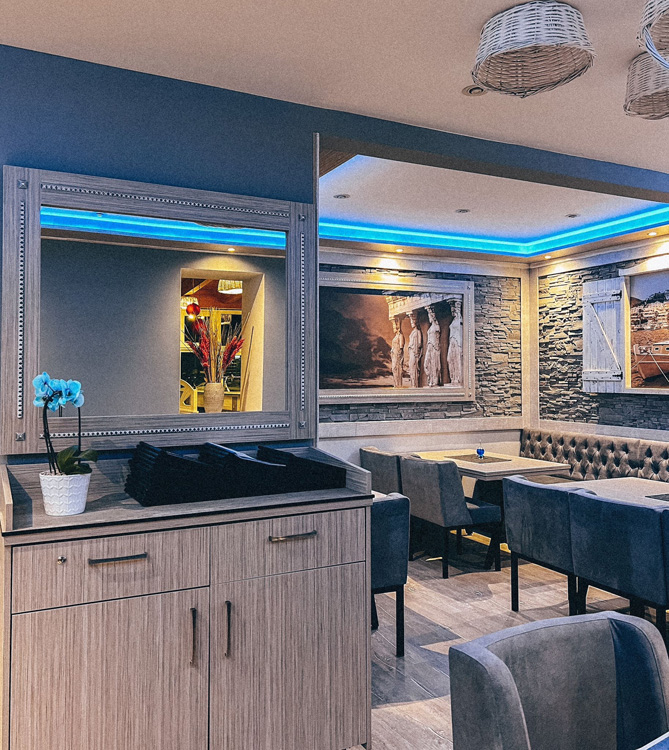 Wir verwöhnen Sie mit einer großen Auswahl aus griechischen Köstlichkeiten und hervorragenden Weinen. Unser griechisches Restaurant bietet Ihnen viel Platz und ein außergewöhnliches Ambiente eine angenehme Atmosphäre. Bei schönem Wetter können Sie sich auf unserer Sommerterrasse verwöhnen lassen. Wir bieten viel Platz für besondere Anlässe wie Geburtstage, Firmenfeiern oder der andere Feierlichkeiten.
